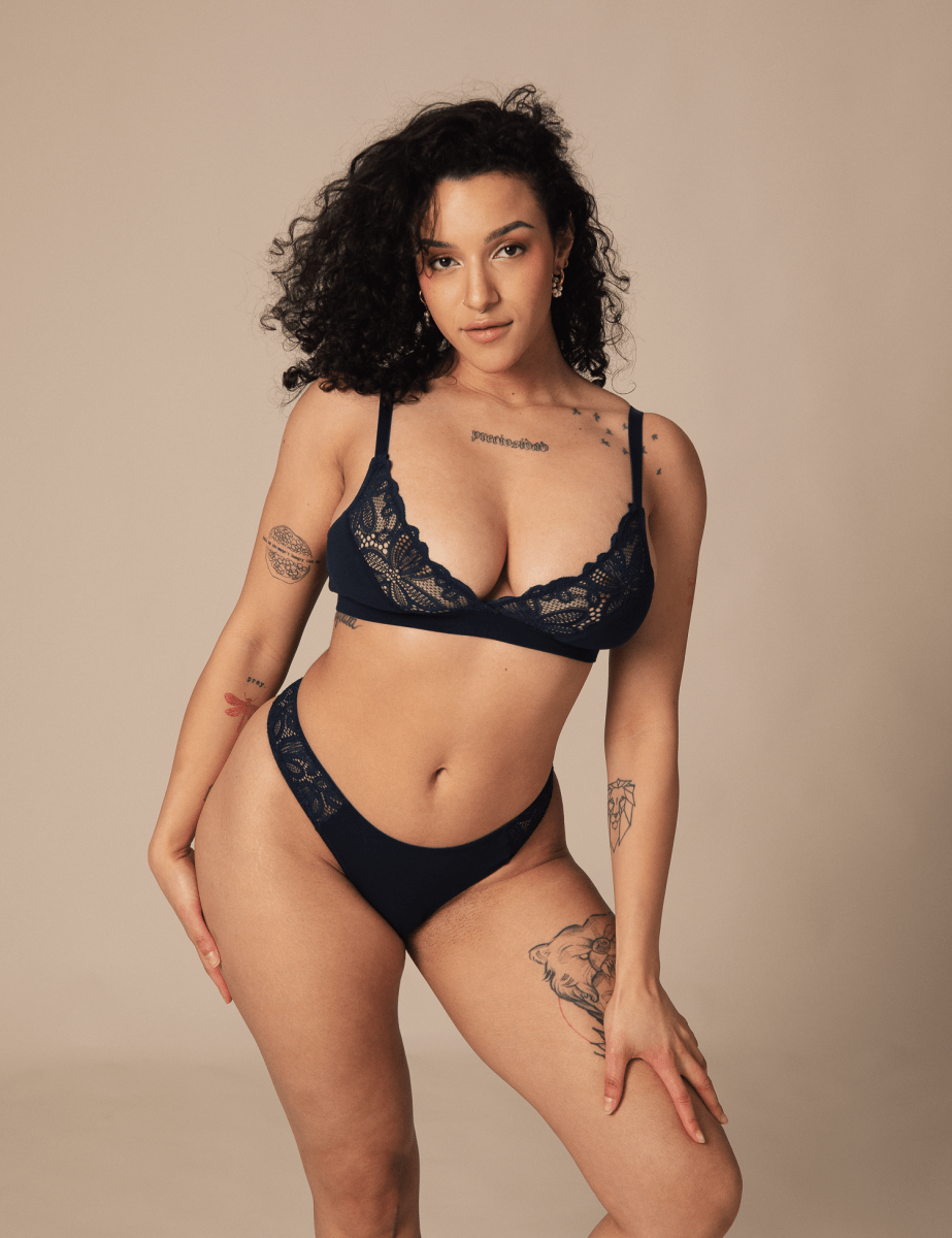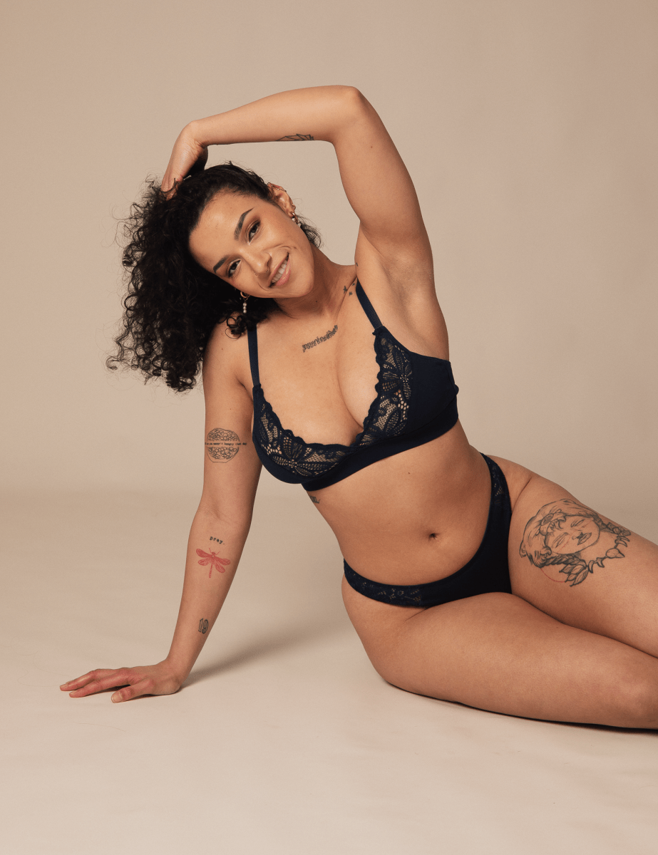 Bralette | mit floraler Spitze | Bio-Baumwolle - S / Dunkelblau ist auf Lager und wird versandt, sobald es wieder verfügbar ist